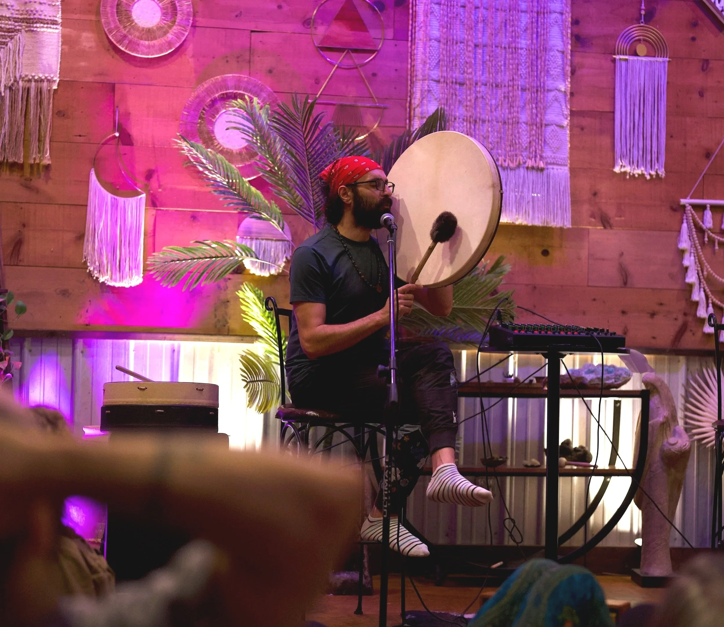 This 20-foot glass-paneled sanctuary transforms into a warm, cushioned space for musicians, vocalists, producers, and creatives to experiment freely and co-create in real time. We’ll explore cacao, vocal toning, world instruments, ambient beats, and open jam moments—capturing the magic as we lightly record the session so you can leave with inspiration (and audio) for your own projects.